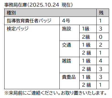 種別 価格(税込) 警備員指導教育責任者資格取得者用バッジ(1号〜4号) 各 1,360円 機械警備業務管理者資格取得者用バッジ 施設警備