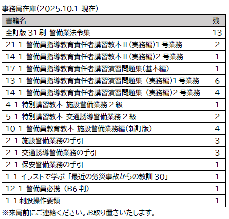 また、書籍の取り寄せには送料がかかります。原則(一社)全国警備業協会ECサイトをご利用ください。